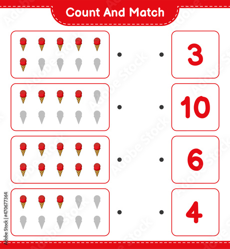 Count and match, count the number of Ice Cream and match with the right numbers. Educational children game, printable worksheet, vector illustration