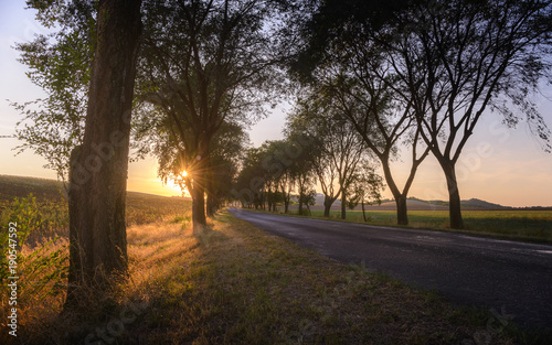 road, tree, sunset, summer, sunshine, asphalt, travel, sunlight, hungary, drive, landscape, way, cloud, distance, meadow, grass, concept, seasonal, field, wheat, green, yellow, scenery, route, freedom, countryside, cloudy, blue, long, beauty, empty, rural, sky, scenic, country, beautiful, background, nature, land, vanishing, point, journey, hungarian