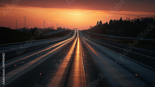 road, highway, car, traffic, night, sunset, sky, travel, light, speed, street, transport, landscape, motion, city, expressway, transportation, drive, asphalt, car, expressway, driving, light, way, blur