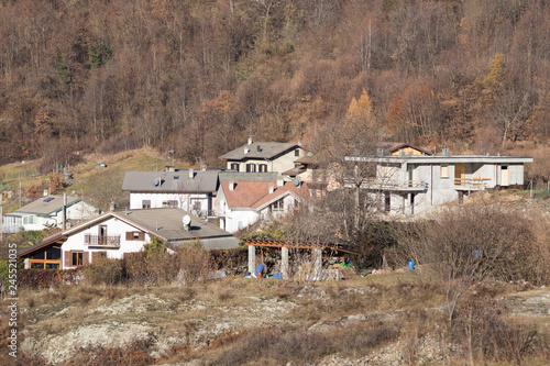 Countryside houses with many trees during autumn