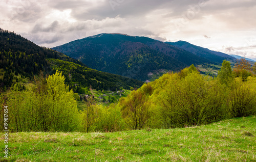 countryside of Carpathian mountains in springtime. beautiful nature scenery on a cloudy day