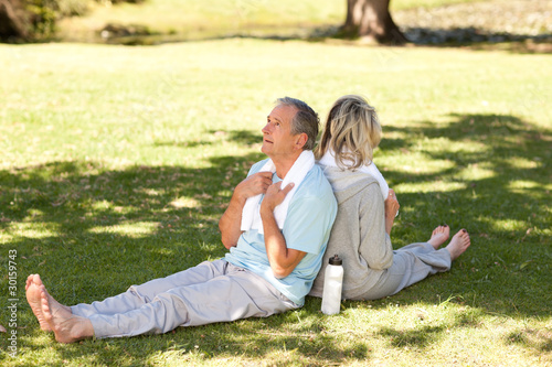 Couple after their streches in the park