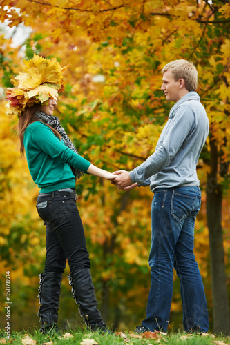 Couple at autumn outdoors