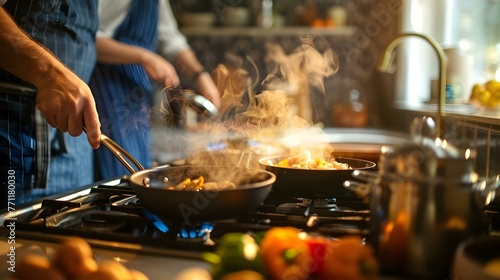 couple, cooking, kitchen, stove, food, home, human relationships, love, meal, domestic, lifestyle