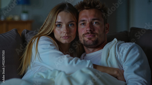 couple, cuddling, cosy, couch, evening, intimacy, soft light, relaxation, togetherness, love, serene, bonding, closeup, calm, calmness, comfort, home, leisure, peaceful, warm tones, tenderness, resting, contentment, affectionate, indoor, companionship, unwinding, sofa, romantic, relaxed, harmony, restful, smiling, happiness, together, hug, human relationships