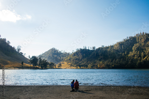 lake, mountain, water, landscape, couple, lover, pair, nature, relax, romance, sitting, summer, travel, hiking, 2, man, woman