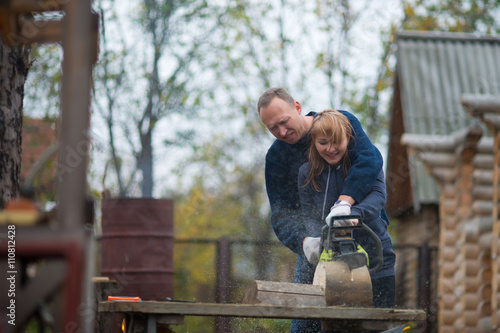tree, manual, electric, 2, carpenter's shop, autumn, profession, tool, power, teamwork, male, chain saw, casual attire, people, skill, caucasian, men at work, female, equipment, circular, wood, timbering, forest, cutting, safety, garden, saw, man, carpenter, log, helping, professional, home, machine, firewood, wooden, work, build, industry, job, heat, couple, site, construction, sawing, fireplace, timber, aged, middle
