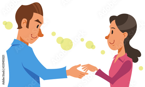 couple, love, human relationships, hand, hold, marriage, propose, man, woman, male, female, wife, husband, collaborating, together, communication, cartoon, illustration, vector