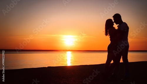 couple in love silhouette at sunset with a church on background