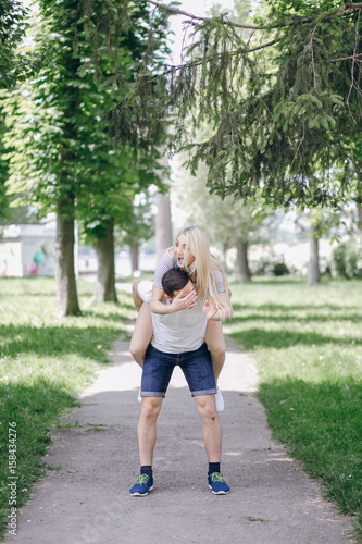 woman, man, 2, t-shirt, light, happy, love, summer, park, nature, couple, together, people, young, grass, female, male, beautiful, human relationships, happiness, fun, green, pretty, caucasian, smiling, sunny, outside, healthy, holiday, sunshine, portrait, tree, day, friendship, girl, sun, summer, charming, model, white, hair, blond, face, hand, blue, brush, walk