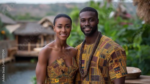 Couple in Vibrant Kente Cloth at Traditional Ceremony
