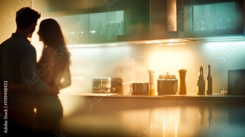 Couple joyfully preparing meal together in contemporary kitchen, symbolizing teamwork and shared moments in a harmonious home environment