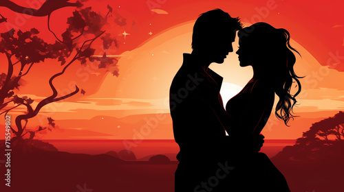 Couple kissing at sunset.