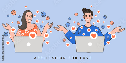 business, computer, woman, laptop, cyberspace, vector, technology, businessman, illustration, network, icon, people, communication, signs, social, phone, cloud, symbol, businesswoman, tablet, office, concept, design, web, connection, love
