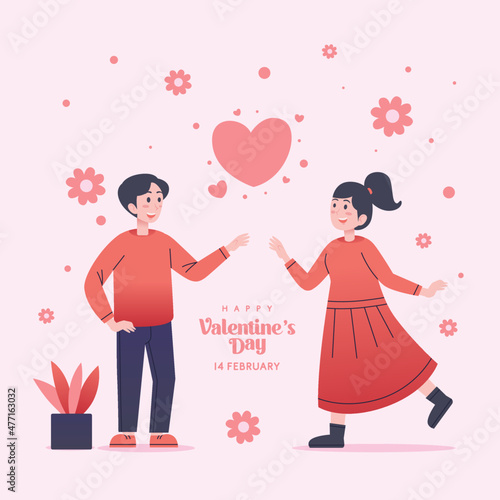 Couple Man Woman Vector Valentine Cute Cartoon Character Illustration
