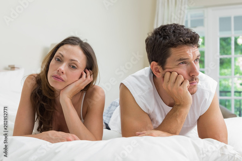 home, house, apartment, lying, bed, bedchamber, human relationships, together, argument, challenged, disagreement, angry, unhappiness, unhappy, upset, rift, problem, trouble, fight, arguing, fighting, annoyed, casual attire, conflict, crisis, serious, leisure, lifestyle, relaxation, ignoring