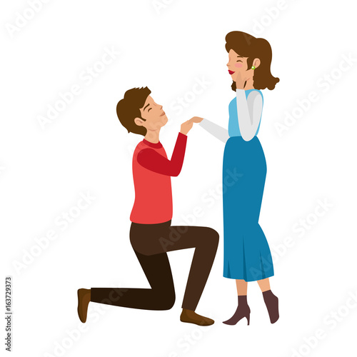 Couple of lovers in proposal of marriage icon over white background colorful design vector illustration