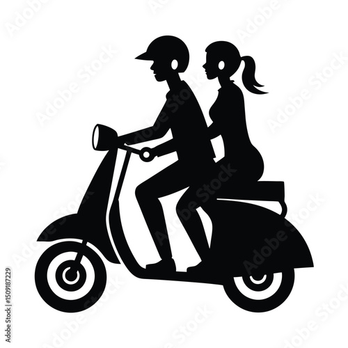 couple, riding, scooter, romantic, travel, pose, silhouette, vector, art, illustration, love, human relationships, connection, romance, transportation, posture, movement, lifestyle, health, fitness, energy, active, body, dynamic, balance, emotion, interaction, companionship, teamwork, support, harmony, wellness, activity, coordination, form, strength