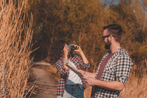 couple, hiking, fun, map, reading, photographing, camera, trail, dock, walking, spring, nature, summer, adventure, lifestyle, leisure, relaxation, human relationships, love, happiness, together, bonding, autumn, fall, romance, closeness, travel, tour tourism, 2, people, person, young, man, woman, holiday, vacation, trip, freedom, traveler, wanderlust, holiday maker, girl, reed, bulrush, lake, outdoors