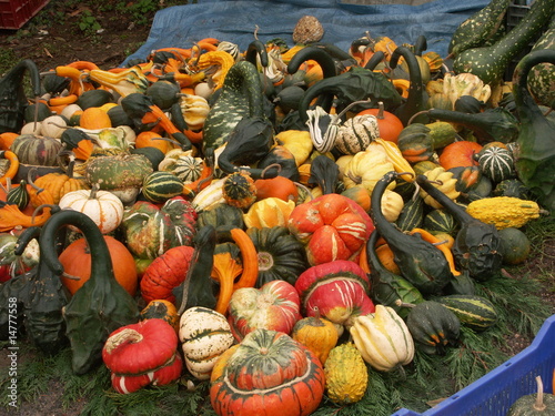 courges de diverses variétés à une foire aux plantes