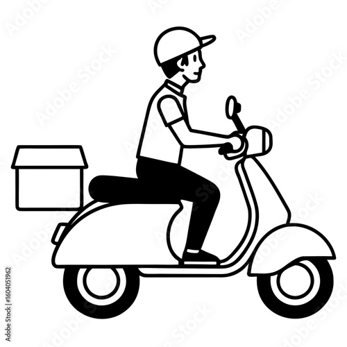 Courier on Moped Silhouette Vector Urban Fast Delivery Service