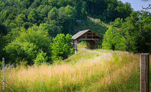 forest, covered bridge, ancient, background, bloom, blooming, blue skies, botanical, colours, colourful, day, environment, expanse, fence, field, flora, floral, flower, freedom, fresh, grass, green, hay, herb, historic, land, landscape, natural, nature, old, run down, stream, tree