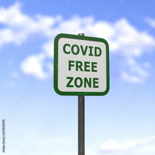 Covid free zone. Road sign for safe area. Coronavirus quarantine.