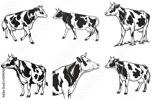 cow, farm, animal, milk, vector, white, calf, cattle, cartoon, black, dairy, illustration, agriculture, bull, isolated, mammal, farm animal, beef, cute, animal, grass, drawing, udder, cow, domestic
