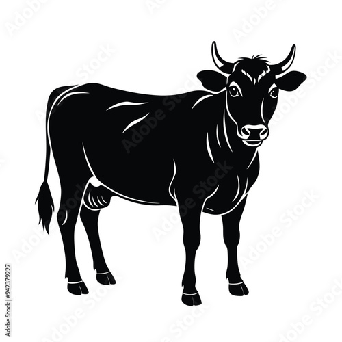 Cow black silhouette isolated on white background Vector illustration