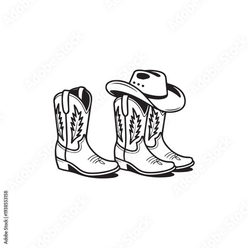 cowboy boots, cowboy hat, western, cowboy, rodeo, country, ranch, western wear, country style, rustic, silhouette, icon, vector, illustration, minimal