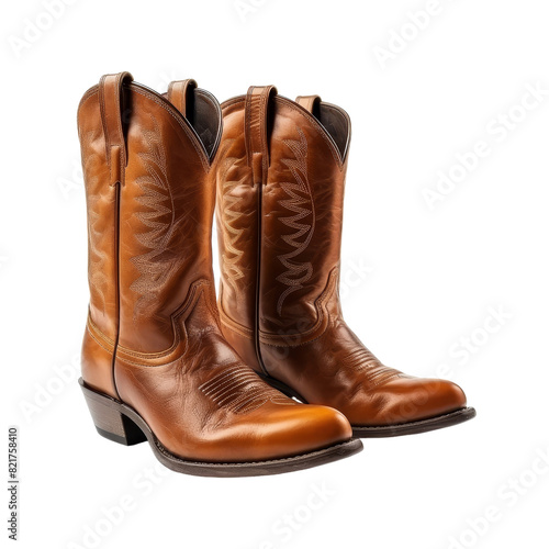Cowboy Leather Boots Isolated on Transparent Background, PNG, Cut Out.