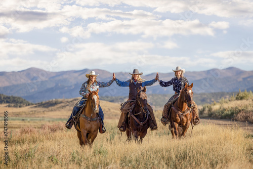 Cowgirl friends riding horses