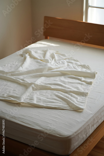 Cozy Bed with a Soft White Blanket: Serene and Comfortable Bedroom Scene