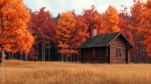 Cozy Cabin in Autumn Forest with Vibrant Foliage