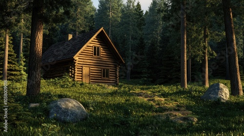 cabin, forest, wood, nature, calmness, landscape, rustic, retreat, greenery, building, path, sunlight, tree, stone, peaceful, vacation, escape, wilderness, scenery, wooden, environment, home, scene, relaxation, adventure, free space, countryside, summer, flora, natural light, cosy, quiet, hillside, open space, shelter, harmony, isolation, forest floor, summer day, pastoral