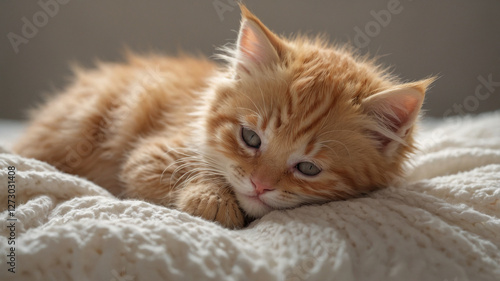 Cozy Cat Nap: A Little Kitten Snuggled Up on a BlanketCozy Cat Nap: A Little Kitten Snuggled Up on a Blanket