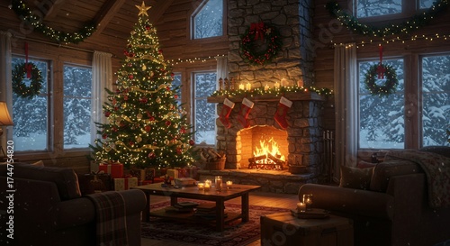 christmas, winter, cabin, fireplace, cosy, snow, gift, landscape, scene, holiday, decoration, warm, interior, festive, rustic, peaceful, relaxing, home, outdoors, view, seasonal, evening, light, family, gathering, tradition, comfort, nature, wood, design, ambience