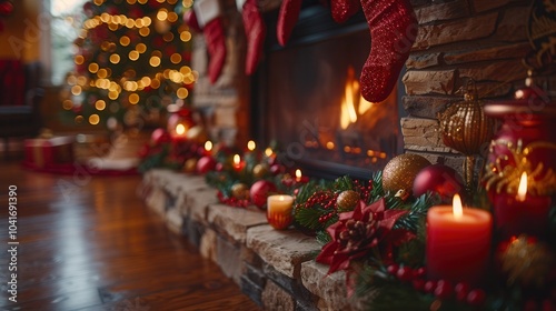 fireplace, stocking, candle, holiday, decor, light, christmas, tree, bokeh, warmth, festive, red, green, tradition, joy, celebration, season, pine, hearth, ambience, decoration, interior, home, gathering, social, winter, flames, cosy, cheer, ornament, atmosphere, sparkle, family, evening, present, snow, relaxing, comfort, pine cone, ribbon, glow, scene, love, hugs