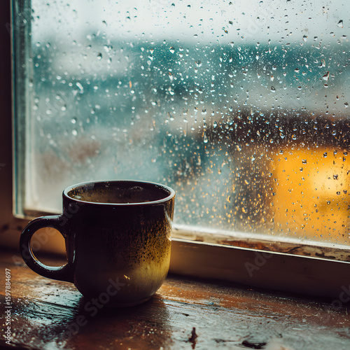 Cozy Cup by the Rainy Window on a Gloomy Day