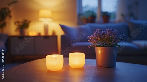Cozy Evening at Home with Candles and Flowers