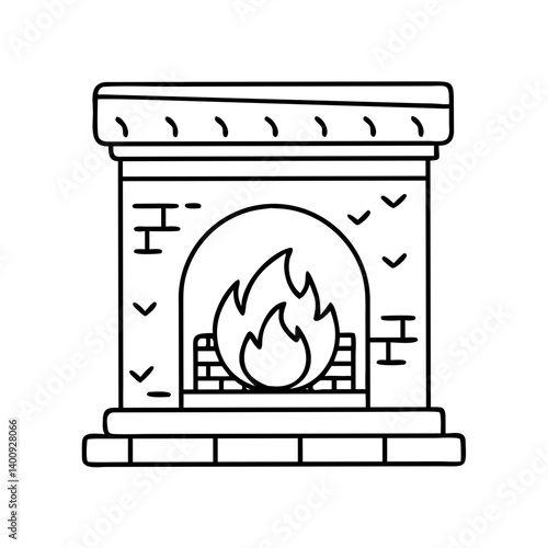 Cozy Fireplace Illustration Line Art Drawing Home Decor Winter Season Warmth Comfort