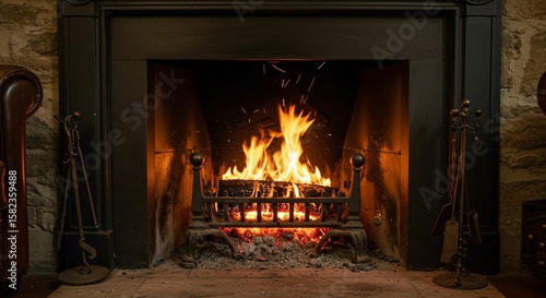Cozy fireplace interior scene