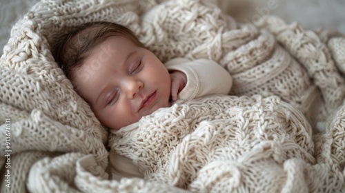 Cozy Infant Peacefully Sleeping Wrapped in Soft Knit Blanket at Home
