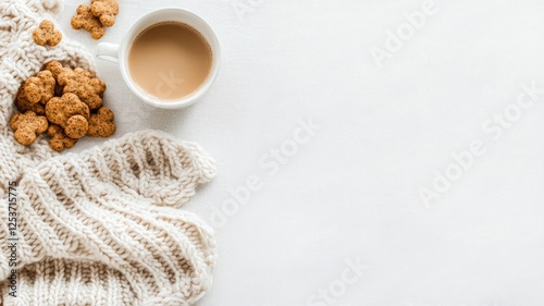 cosy, autumn, hot drink, warm, cookie, foulard, knitted, relaxing, comfort, white, background, fall, hot, drink, sweater, latte, mug, wool, bake, snack, textured, vibe, winter, relaxation, beige, time, brown, treat, beverage, minimal, calm, peaceful, setting, knitwear, woolen, soft, snug, homelike, scenic, still, life, morning, treat, warmth, copy space