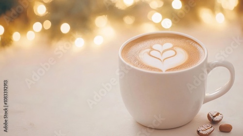 Cozy latte art with coffee beans on a serene background