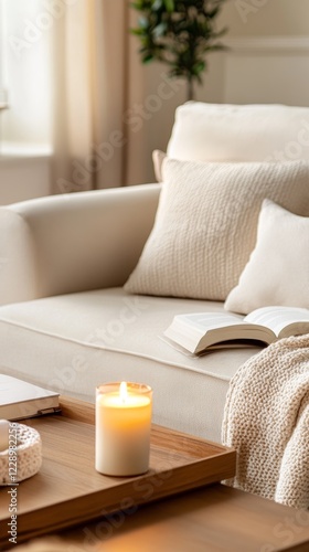 sofa, mocha, mousse, pillow, lit, candle, book, cosy, living, room, relaxing, tranquil, interior, design, throw, blanket, decor, warm, atmosphere, furniture, home, peaceful, soft, texture, ambience, stylish, leisure, reading, modern, comfort, sitting, area, natural, light, aesthetic, serenity, lifestyle, corner, simple, elegance, time, space, zone, relaxation, inviting, chic, lighting