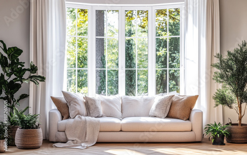 living, room, white, sofa, pillow, plant, natural, light, large, window, decoration, cosy, furniture, interior, design, bright, style, modern, home, decor, comfort, greenery, textile, curtain, casual attire, seating, seasonal, calmness, fresh, air, inviting, space, layout, open, hardwood, floor, warm, colours, contemporary, roomy, feeling, relaxing, atmosphere, material, sunlight, homely, pot