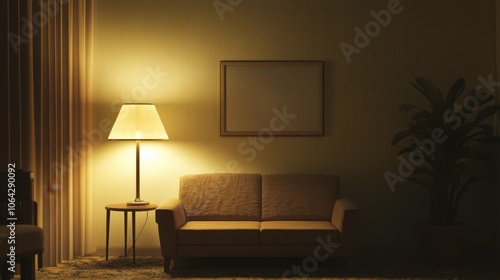 Cozy Living Room with Soft Lighting and Minimalist Decor