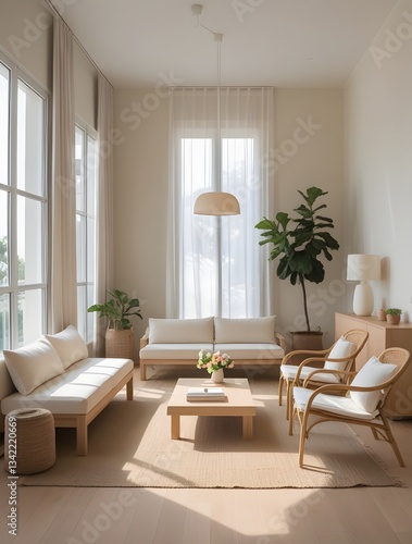 Cozy Minimalist Living Room with Natural Light and Warm Neutral Tones