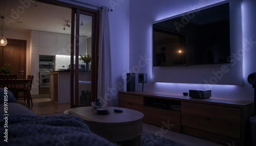 cosy, living room, night, modern, decor, ambient, lighting, relaxation, comfort, television, furniture, dark, home, design, interior, space, warmth, stylish, calmness, evening, shadow, table, couch, technology, soothing, atmosphere, decoration, curtain, wood, kitchen, floor, carpet, pillow, minimalist, aesthetic, homelike, arrangement, scene, peaceful, calm, soft, energy, inviting, room, light